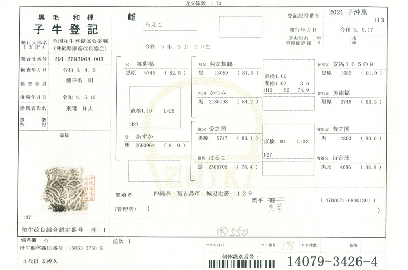 毛色は濃赤褐色単色であり角が無く、皮下脂肪は厚いがロース芯面積は小さいという特徴のある牛です。